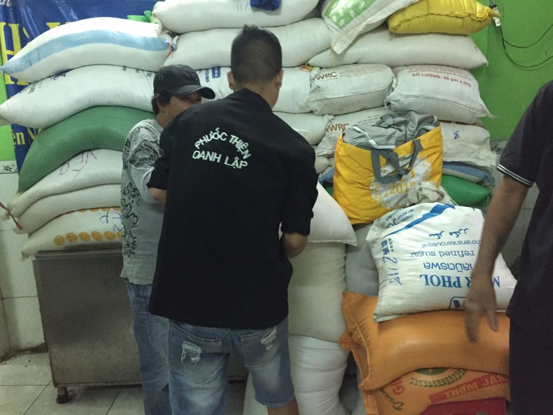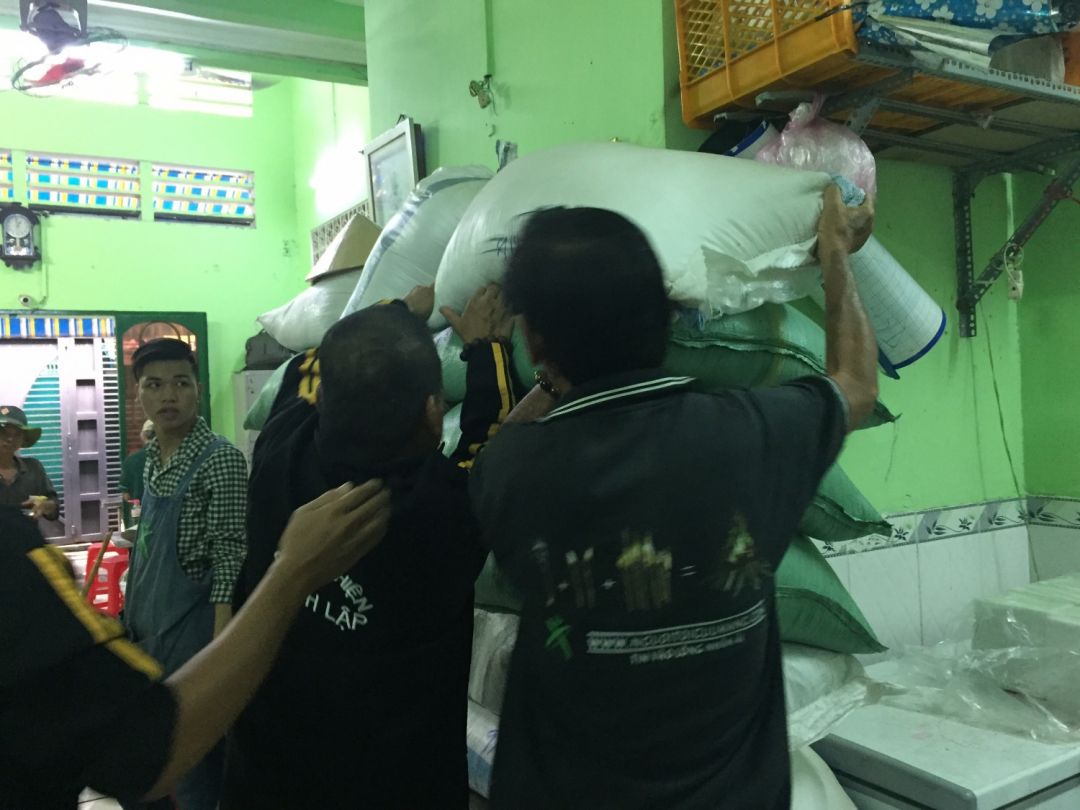 Hôm thứ 7, bác Ba Oanh & các anh em trong đội Mai táng đã ghé quán cơm để nhận 300kg gạo.