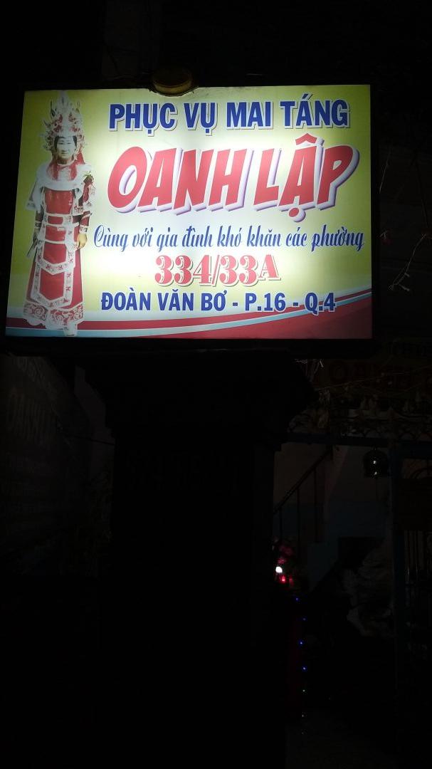 Hiện tại chú Ba Oanh đã thuê một phòng trọ tại địa chỉ 334/33A đường Đoàn Văn Bơ, phường 16, Q4. Để áo quan và vật dụng vì chỗ để áo quan trước đây không cho chú thuê nữa nên giờ chú phải thuê chỗ mới với giá 5 triệu đồng.