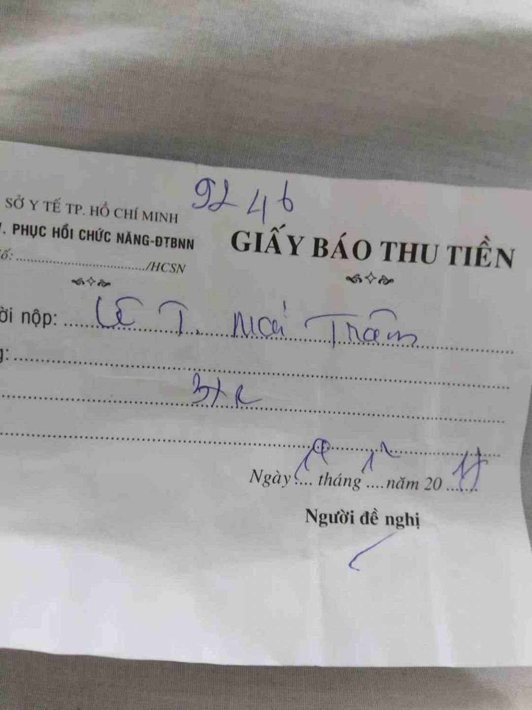 Hôm qua bệnh viện có gửi giấy yêu cầu đóng tạm ứng viện phí 3,000,000đ.