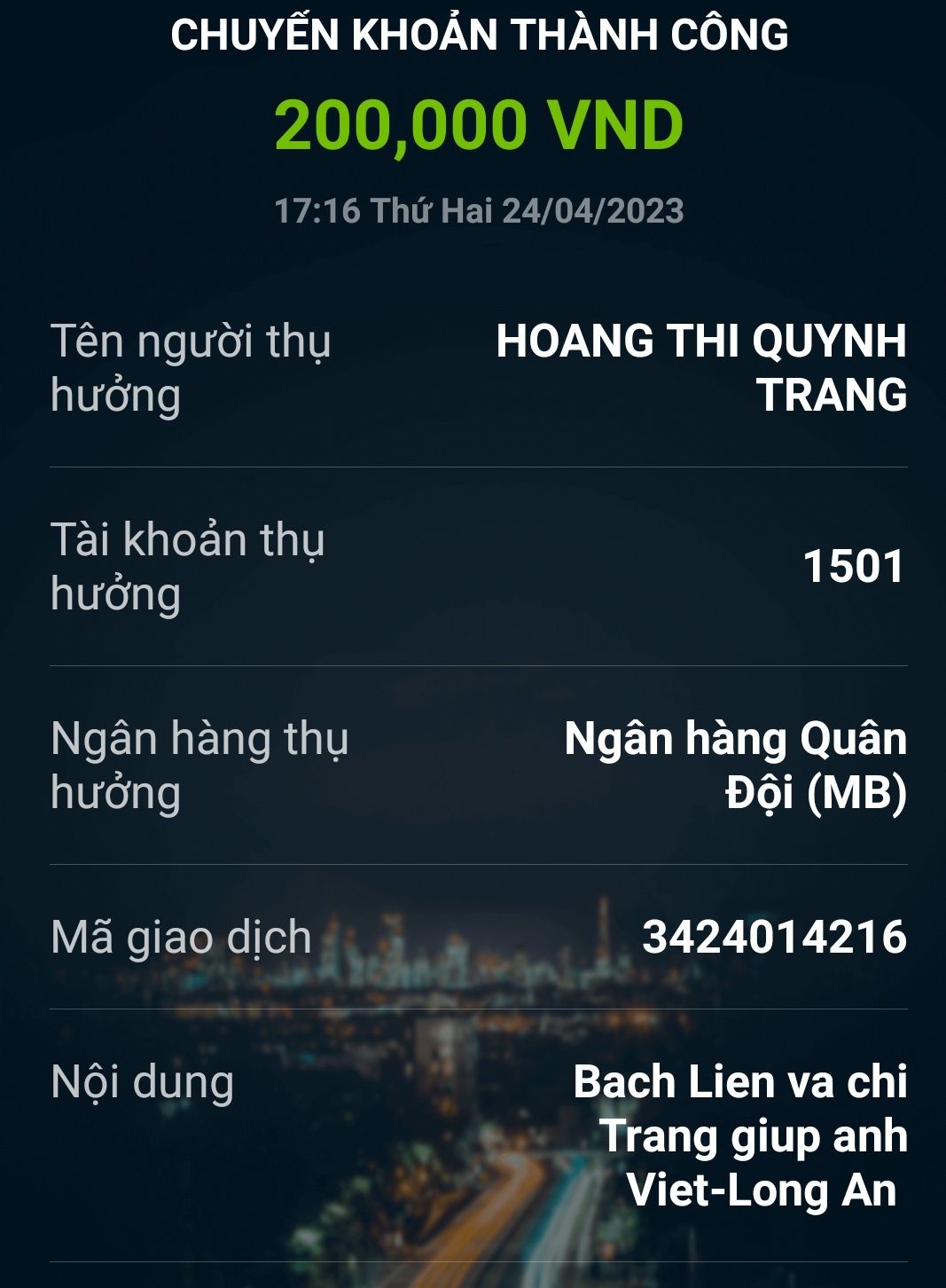 Lathuvang đã chuyển tk anh Việt CMTX T3,4/23 .
