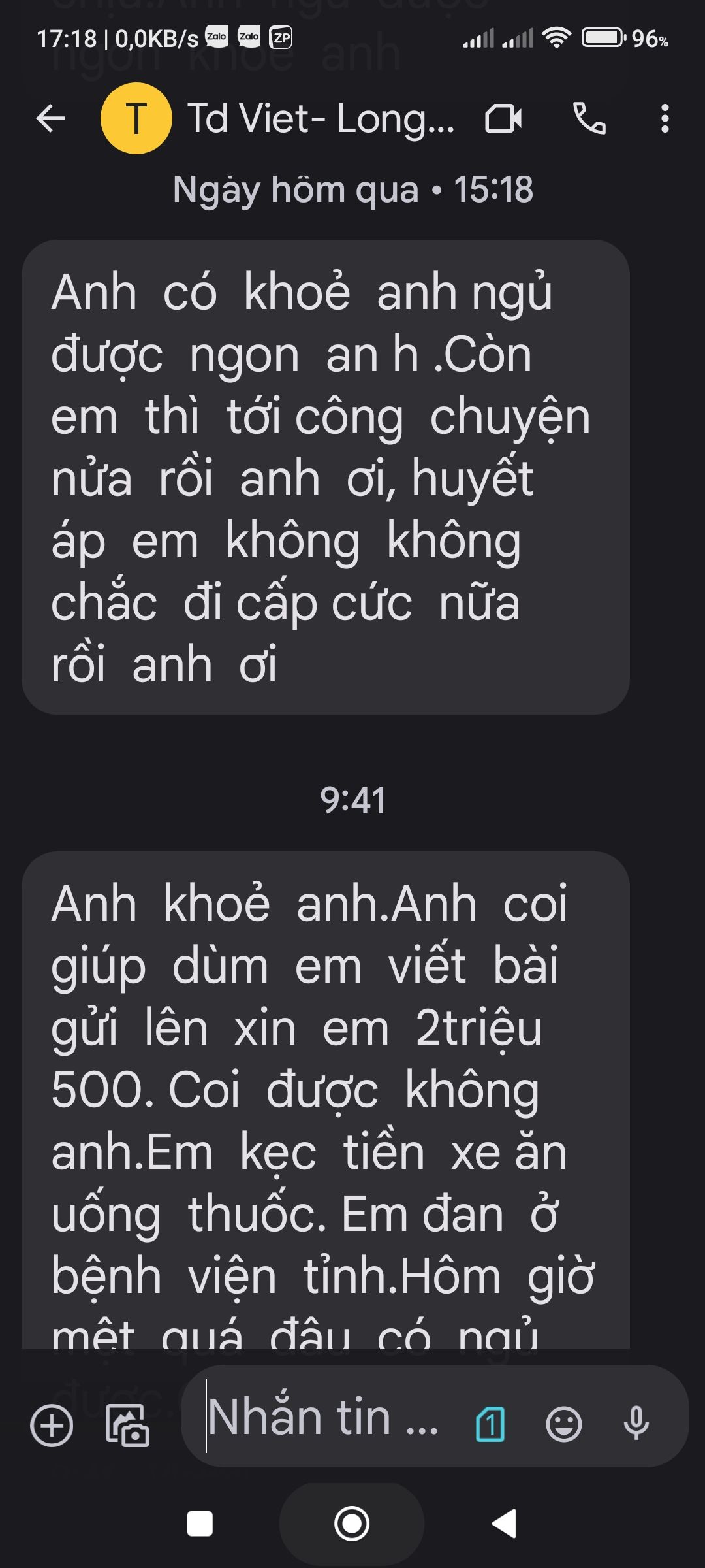 Hôm qua bạn Việt phải đi cấp cứu nữa nên gửi tin nhắn này nhờ Xelan90 đưa lên diễn đàn xin trợ giúp. Mong cả nhà chung tay giúp đỡ
