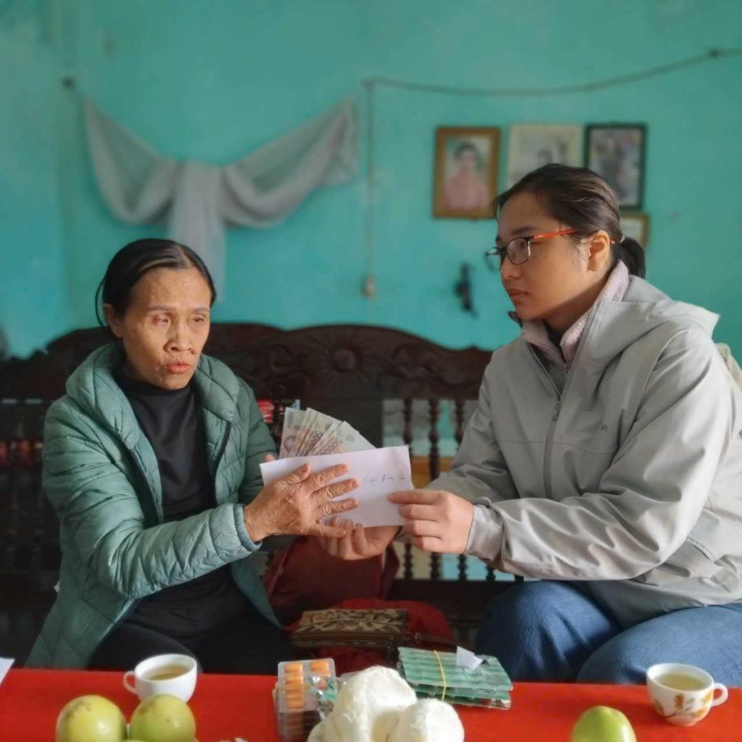 Chủ nhật ngày 19/01/2025, em và chị An Khuê đã đi Khoái Châu thăm nhà chị Ngà. Mấy hôm nay tinh thần chị đã ổn và vui vẻ hơn. Hiện tại chị đang uống hoá chất khô, ngày mùng 6 tết chị sẽ nhập viện cho đợt điều chị tiếp theo. Chị sống 1 mình, hàng ngày có bà con lỗi xóm đến thăm hỏi, giúp đỡ. Cân nhắc thực tế, nhà ở tuềnh toàng, hoàn cảnh neo đơn, chúng em quyết định gửi chị 3,000,000 VND trong khoản đã quyên góp để chị chi tiêu ăn uống trong khoảng thời gian này. Số tiền còn lại qua Tết sẽ chuyển tiếp khi chị nhập viện để chị có chi phí điều trị.