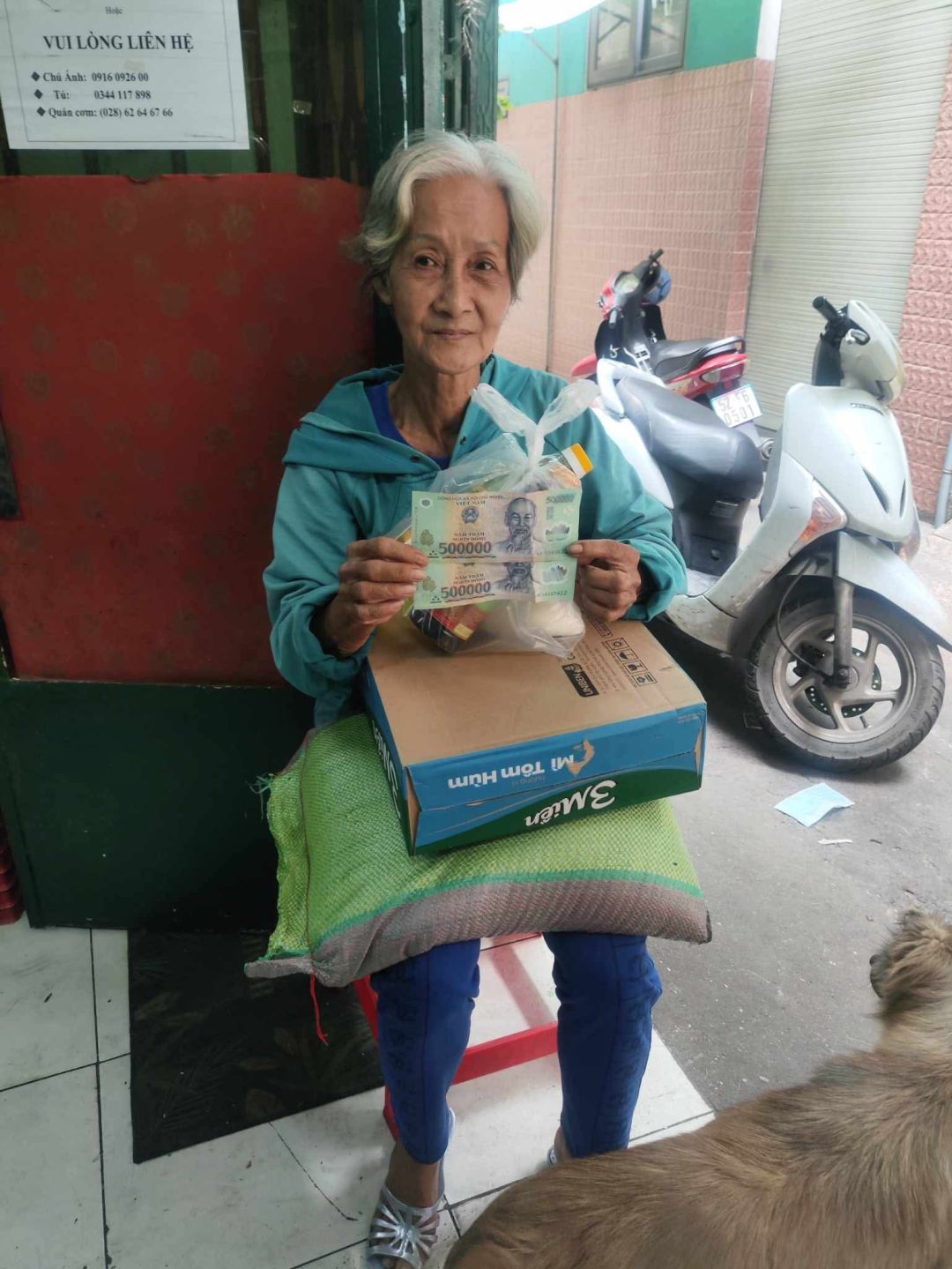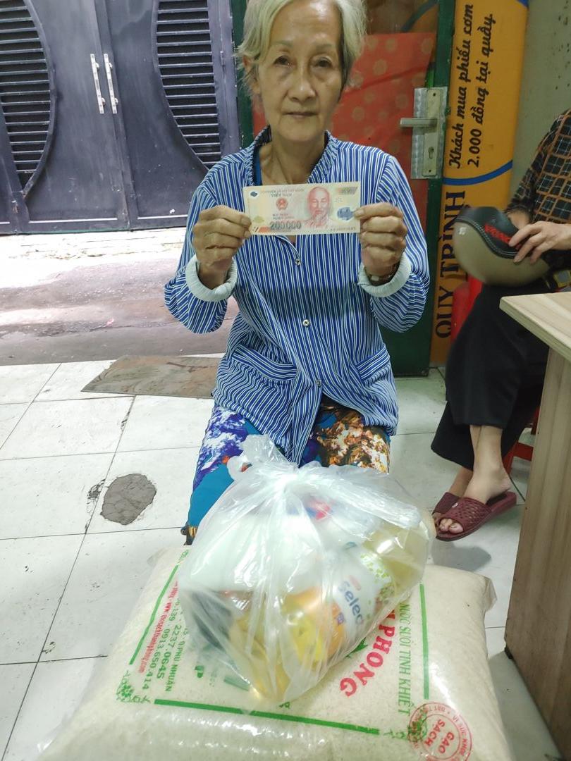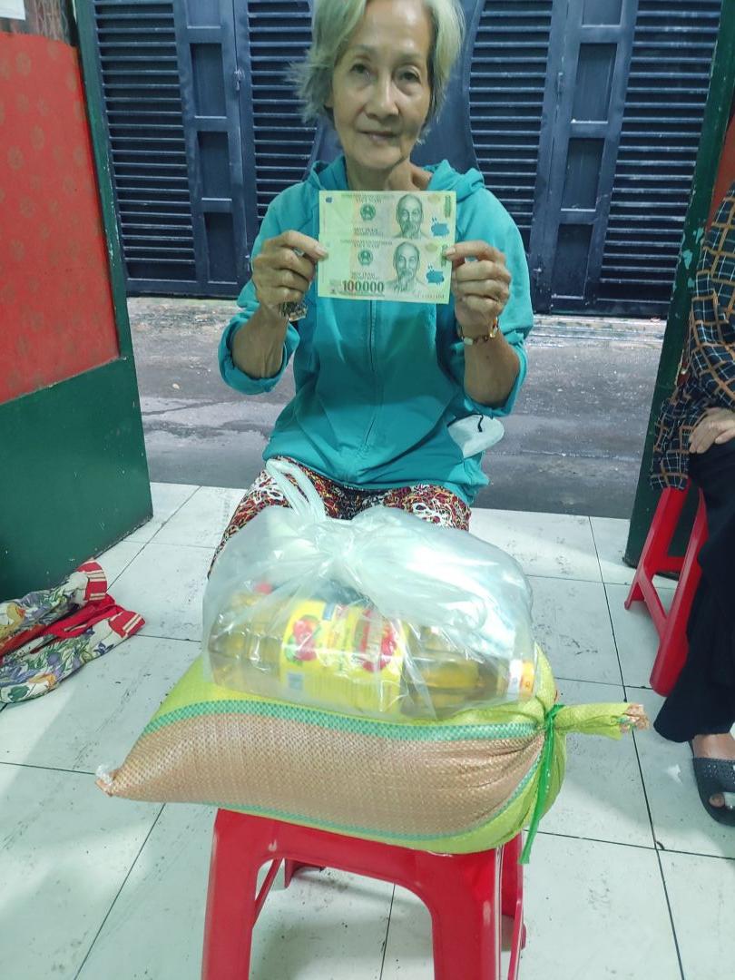 Letuantu cập nhật hình ảnh trao 200,000đ CMTX T3 từ Michelle_du và GĐ kèm gạo & nhu yếu phẩm T3 cho gia đình cô Tư.
