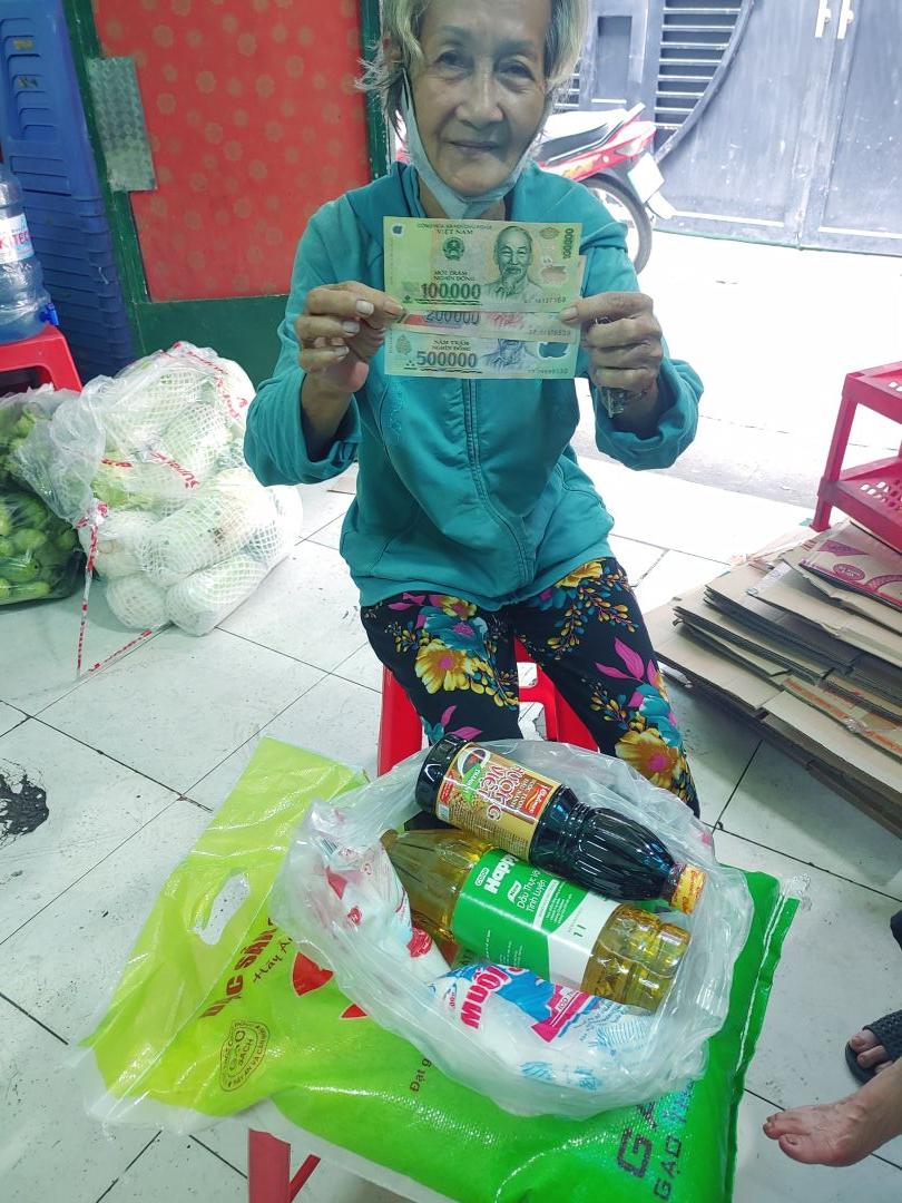 Gồm gạo + nhu yếu phẩm & 200,000đ CMTX T12 ( còn 300,000đ chưa trao vì cô đến nhận sớm hơn thời gian duyệt hỗ trợ)