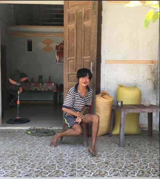 Con đầu là anh Nguyễn Vũ Á (50 tuổi) - ăn uống phải đút, phải tắm rửa cho, chỉ quanh quẩn trong nhà, ăn cháo, khi nào đau thì đi Bv