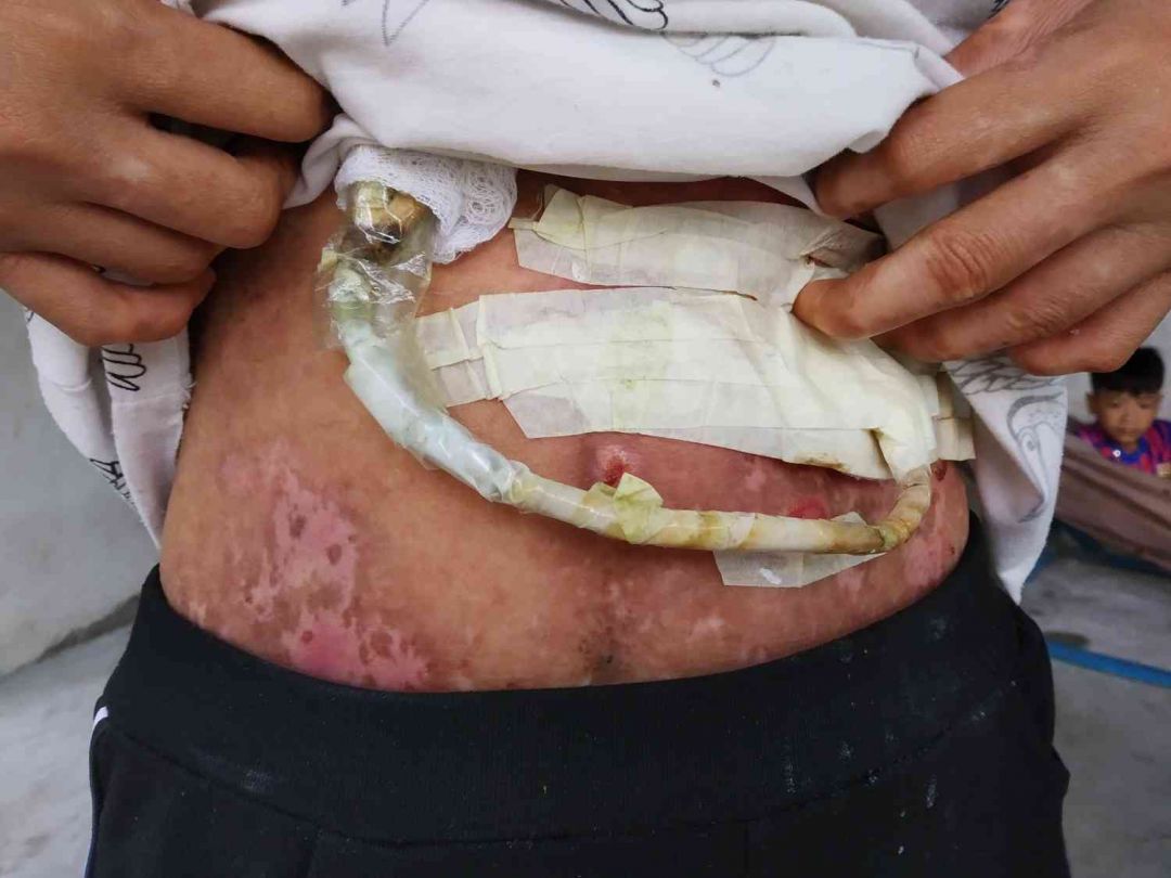 thời điểm Mai Trâm xuống thăm Em thì được biết ống dẫn thức ăn của Em đã hơn sáu tháng và da bụng của Em cũng đã có dấu hiệu bị lở .