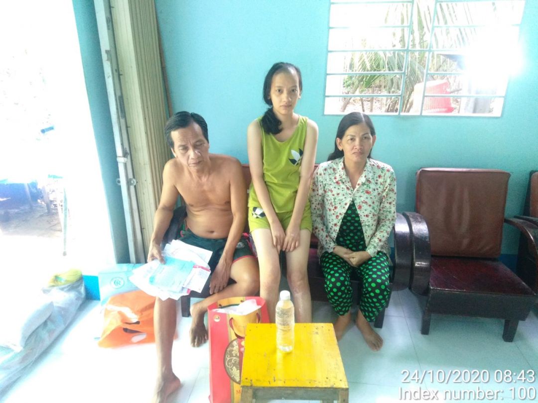 Mình xin cập nhật thêm 1 số thông tin đã thu thập được: bây giờ cháu Thảo các vết thương lở loét của cháu đã không còn bị lở và chảy máu mủ như trước nữa, cháu được hưởng hàng tháng khoảng 400k tiền bệnh tật, chuẩn bị cháu lại đi bệnh viện thay ống hút. Anh Tài là cha của cháu Thảo thì mới mổ cột sống liệt, may có BHYT hộ gia đình cận nghèo cũng đỡ 1 ít, nay anh Tài cũng không làm gì được nhiều vì chân còn đi khấp khiểng. Chị Mai thì buổi chiều từ khoảng 16h trở đi buôn bán bắp luộc ( bắp là ngô ), cá viên chiên... cũng không bán được nhiều vì hiện nay là mùa mưa. Trước đây có vay ngân hàng là 37 triệu để làm nhà cùng với vay hàng xóm ( theo lời kể của gia đình vì vay của hàng xóm mỗi người 1 ít nên nói là không có giấy tờ gì còn vay của ngân hàng thì có giấy tờ ), hiện hàng tháng phải trả lãi khoảng 500k - 600k. Khu vực ở đây hệ mưa lớn là bị ngập, hiện trước cửa nhà có làm 1 bệ đá để chắn nước vào vì nước mới rút.