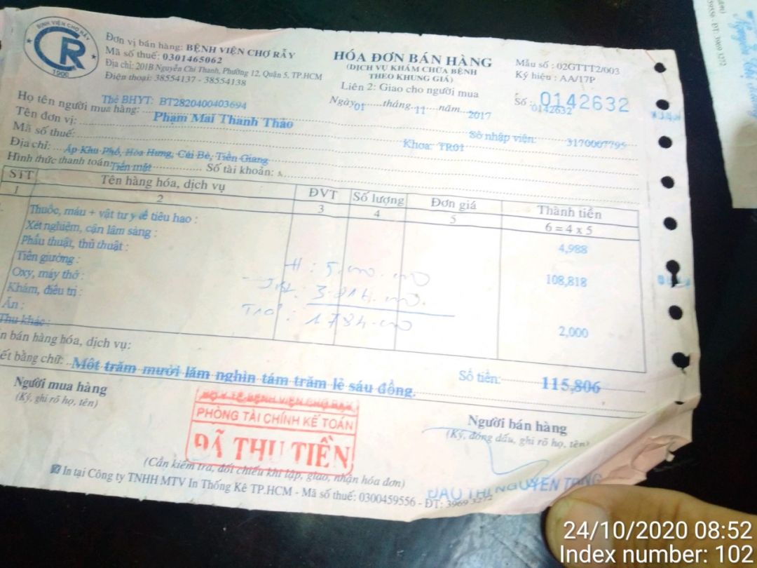 gia đình Em gửi lời cảm ơn đến Cả Nhà đã tạo điều kiện cho Em Thảo được thay ống.