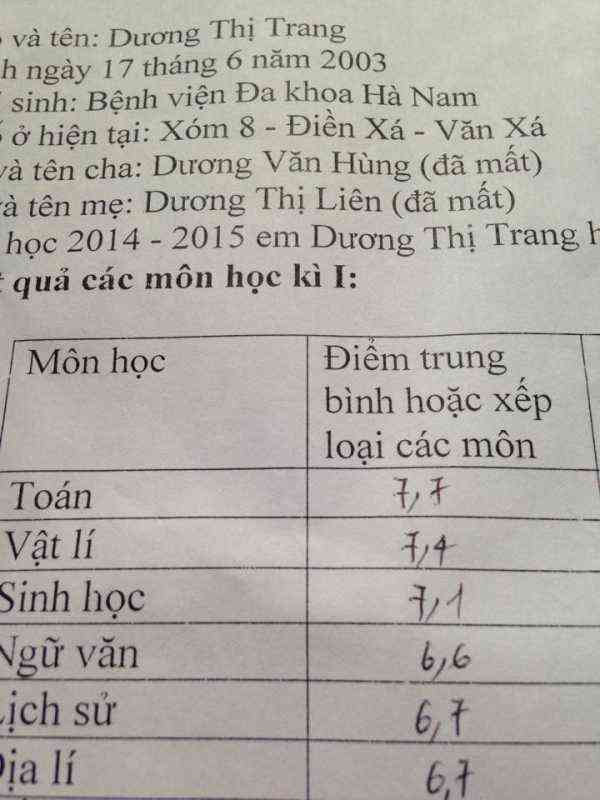 Cháu gái năm lớp 6 vừa qua đạt HS tiến tiến; cháu có môn Anh văn kém, chưa được 6 phẩy. Vẫn đang cố gắng học tốt các môn do HBL định hướng. Cháu lớn năm nay thi hết cấp nên cả 2 cháu năm nay đều đi học thêm, có tiền CMTX của bác TLC và Opla nên ông bà cháu cũng đỡ lo hơn. Ông bà gửi lời cám ơn tới 2 bác ạ.