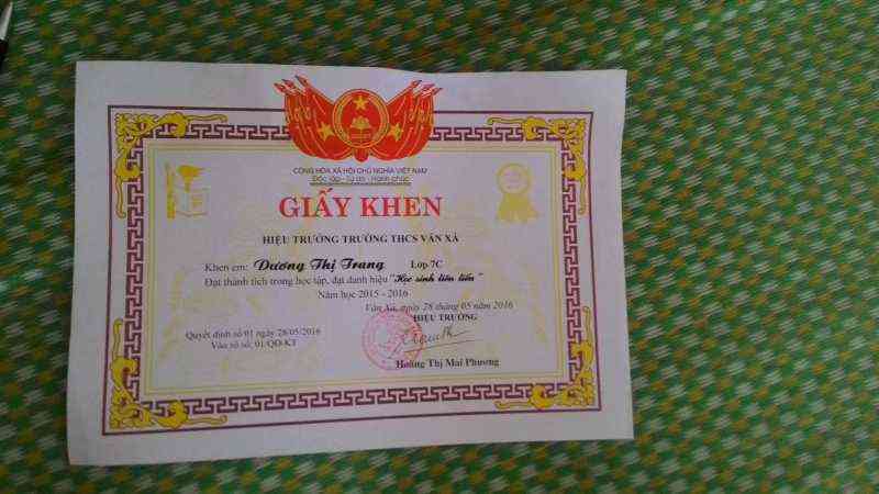 Cháu Trang năm nay lên lớp 8, cháu trang học tốt hơn cháu Huyền, kỳ vừa rồi được học sinh tiên tiến