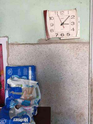 Hàng ngày chị Phụ chăm bé và chăm bò. Tài sản trong nhà vẫn không có gì ngoài máy nghe nhạc và chiếc đồng hồ treo tường vỡ các góc.
