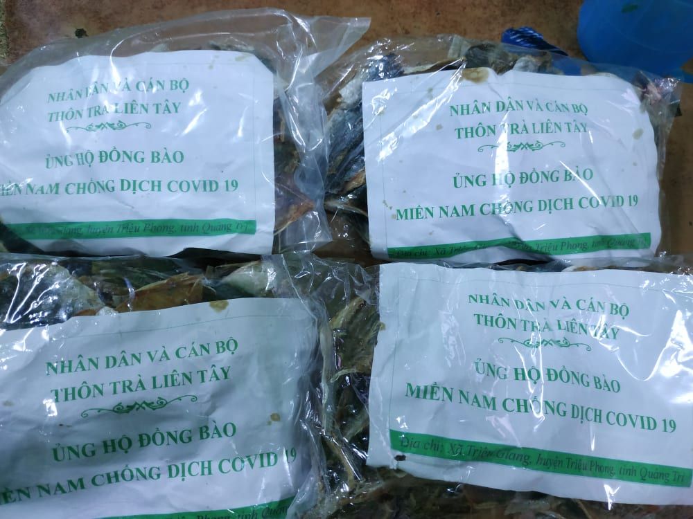 -    Nhóm thiện nguyện “Cựu học sinh Nguyễn Hoàng” gởi tặng 50 kg cá hấp, 100 lon đậu
