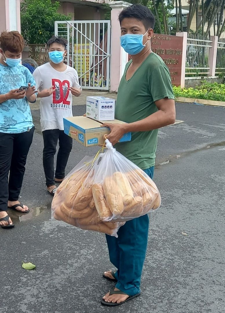 hình ảnh bạn bè6X chở bánh mì và sữa đậu nành qua xóm trọ Mai Trâm và hình ảnh Tú CA phường nhận đưa đến khu cách ly bà con khu cách ly nhận bánh mì xin gửi đến cả nhà cùng nắm được.