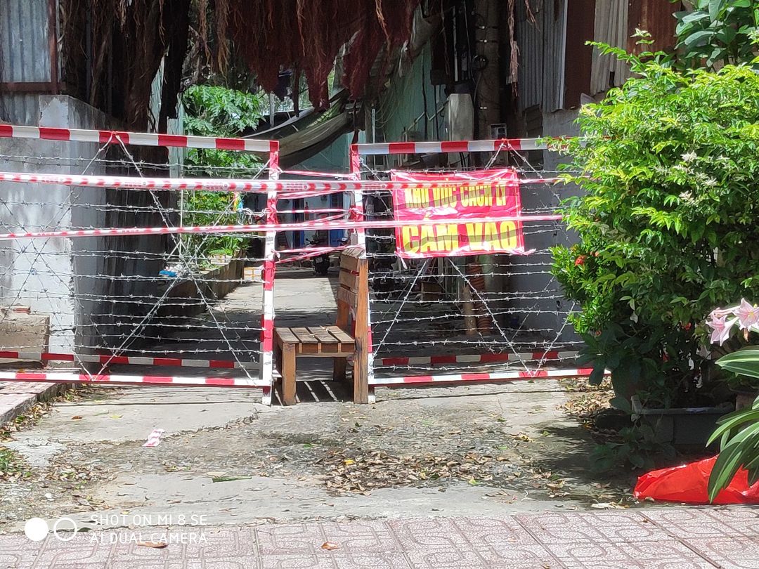 Hình ảnh con đường chính vào 2 con hẻm đã bị căng dây xin gửi đến cả nhà cùng nắm được.