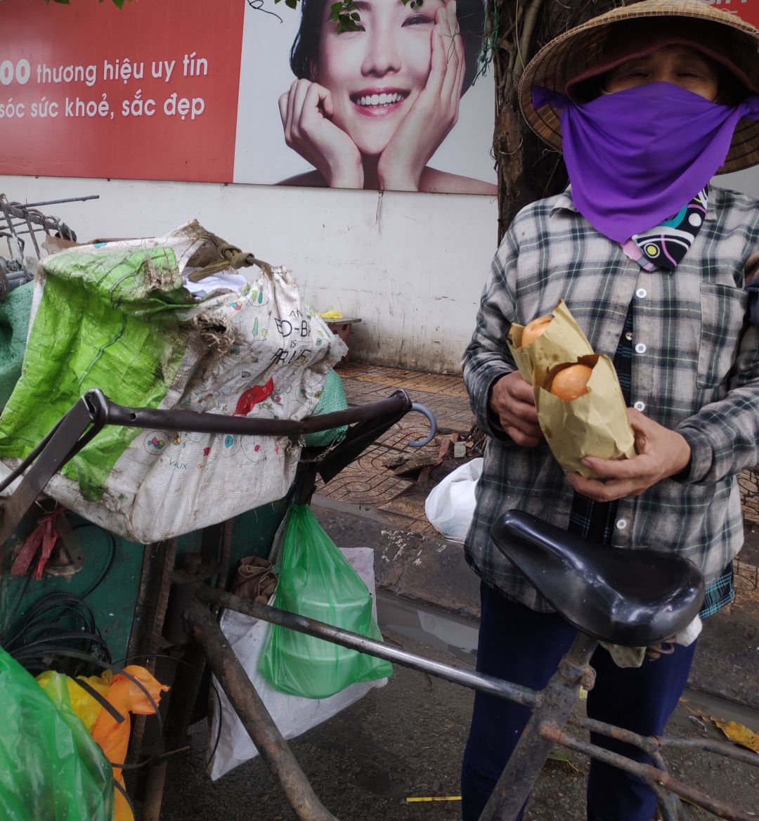 Và xin gửi một số hình ảnh Mẹ con của Mai Trâm đi chia sẻ bánh mì đến tây bà con ở khu vực Sài Gòn .