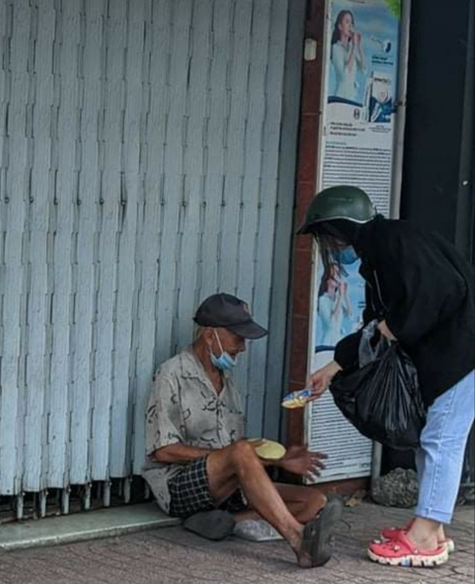 Và hình ảnh Mai Trâm đi phát bánh mì đến tây bà con tại khu vực Xin gửi đến cả nhà cùng nắm được ❤️