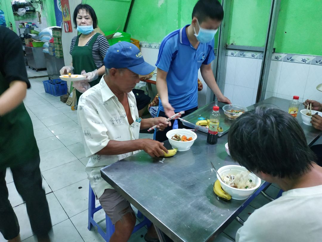 Hôm nay là buổi phát cơm đầu tiên sau dịch bệnh, mọi việc chưa được trôi chảy lắm do phải sắp xếp, ổn định lại các thứ, tuy vậy chúng ta vẫn phục vụ bà con đúng giờ. Bà con ai cũng vui mừng vì có được bữa ăn ngon & đầy đủ dinh dưỡng từ quán của chúng ta, nhìn mọi người ăn ngon lành thì người phục vụ chúng ta cũng thấy hạnh phúc biết bao.