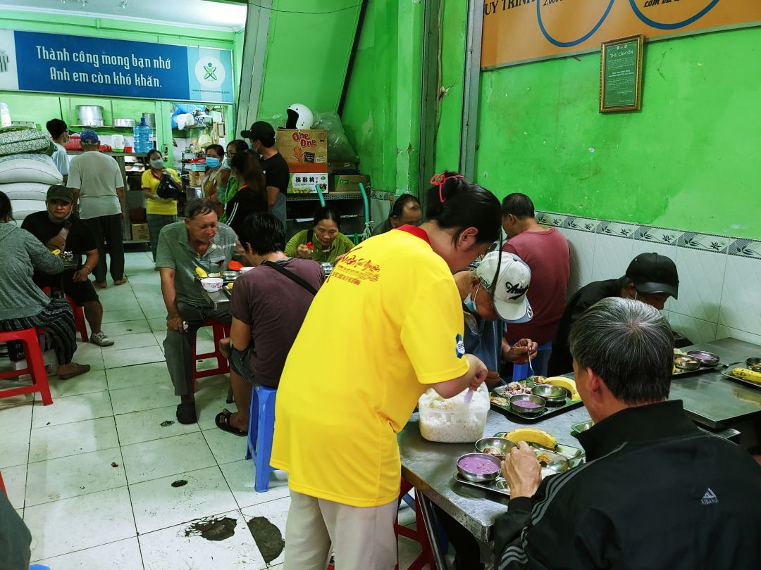 Quán cơm 2000đ SG đã hoạt động lại được 1 tuần rồi, bà con đến quán cũng khá đông.