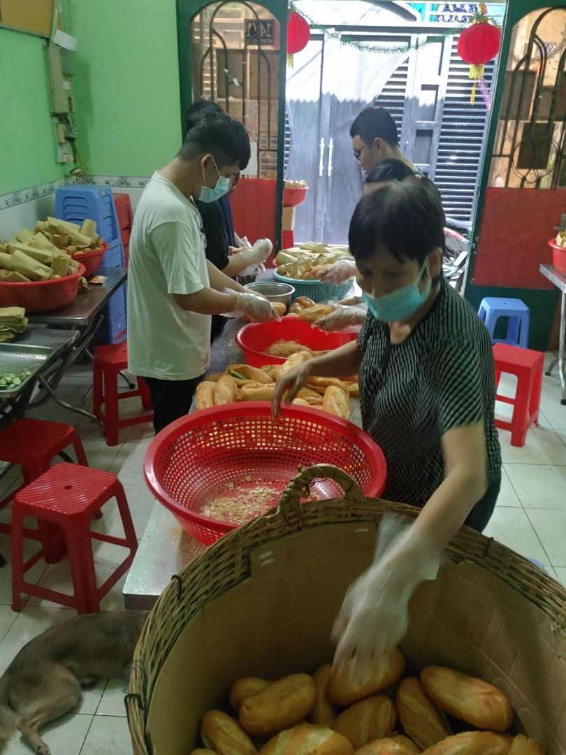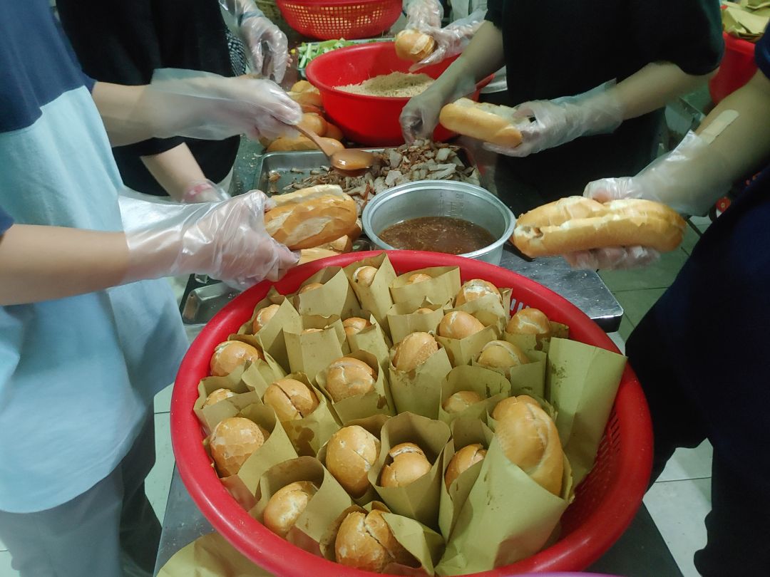 Ngày thứ 3 đầu tiên là phát 400 ổ bánh mì thịt miễn phí kèm chuối + hũ chao