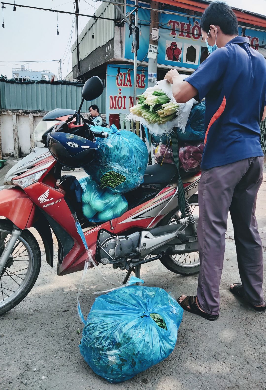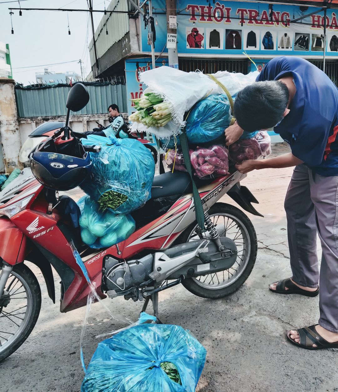 Hôm Nay Ngày 6 tháng 4 năm 2023 Mai Trâm có mua đồ cho quán cơm 30kg móp 20kg đậu bún xe bán vé số của Mai Trâm không chờ về Quán Cơm nổi.nên nhờ Anh6 trở về Quán Cơm giúp cho kịp thời gian sơ chế để phục vụ cho bà con.