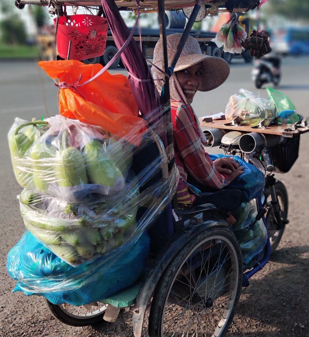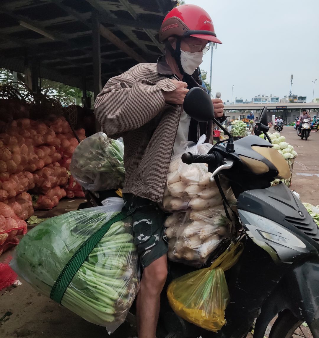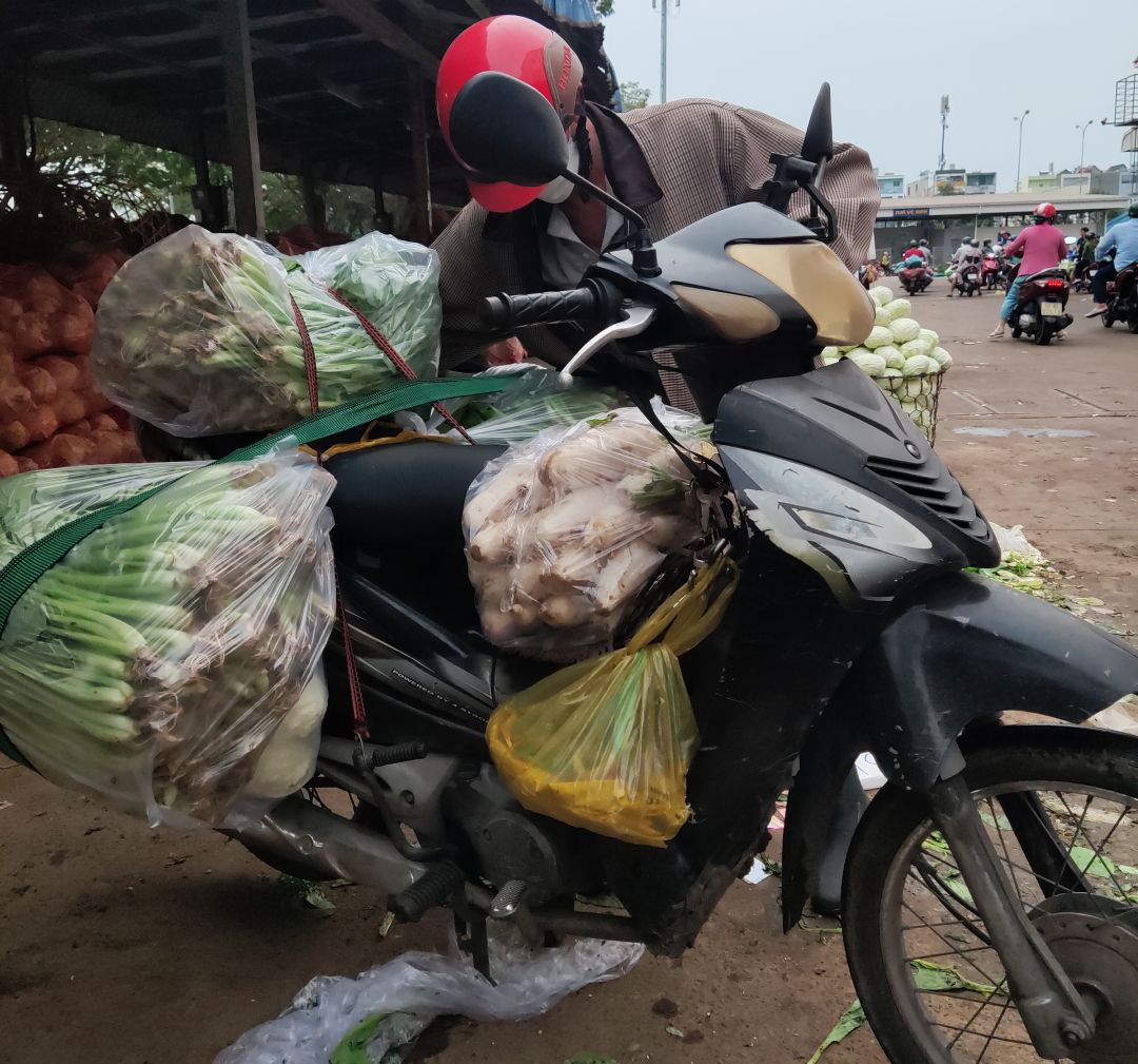 Hôm nay Mngày 9/12/ Mai Trâm chở rau củ quả cho quán Cơm 2000kSG tới 65 kg xe của Mai Trâm không đủ sức vượt quá 2 cây cầu một Cầu Tránh Hưng Phạm Hùng 2 và cầu Nguyễn Tri Phương nên nhờ Bạn Bè 6x qua nhà Mai Trâm chở về quán Cơm 2000kSG❤️♥️