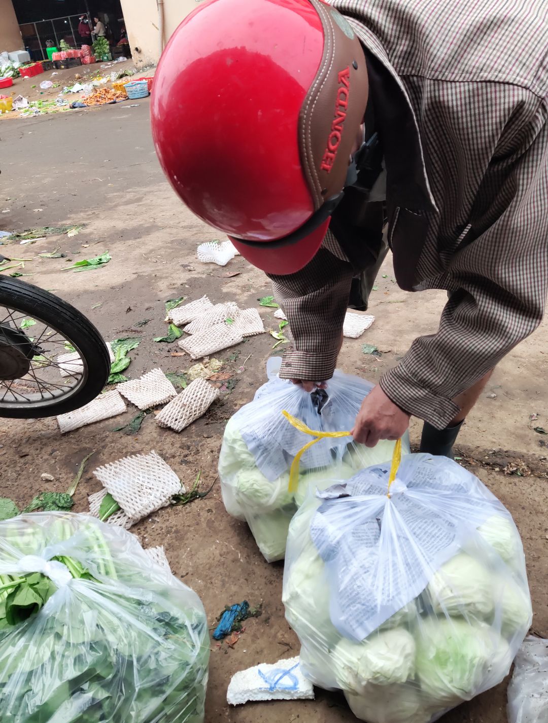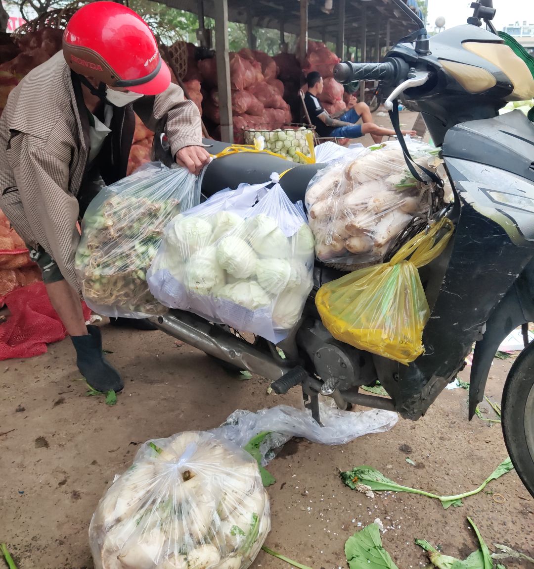 Hôm qua Mai Trâm đi bán tiện có mua rau củ quả cho quán Cơm SG2000₫ và được bà con tiểu thương cho thêm một ít nên Mai Trâm không chở về Quán Cơm hết được và Gọi điện nhờ Bạn Bè 6X xuống chở về Quán Cơm để phục vụ cho bà con.