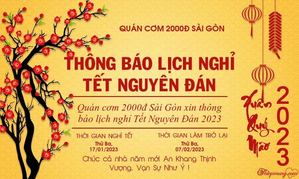 Quán cơm 2000đ Sài Gòn xin thông báo lịch nghỉ Tết Quý Mão như sau: