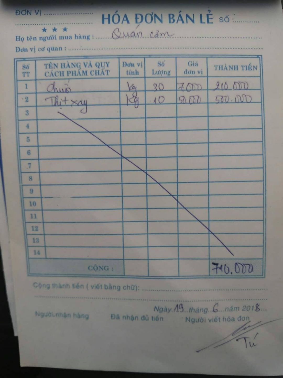 Quán cơm ĐL nhận được một số nhu yếu phẩm từ Sài Gòn chuyển lên như sau: