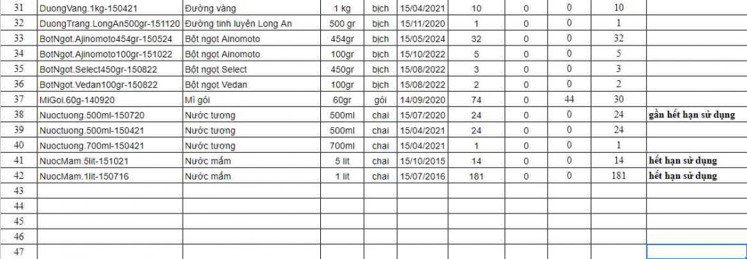42   Nước mắm   1 lit   15/7/2016   chai   181   hết hạn sử dụng