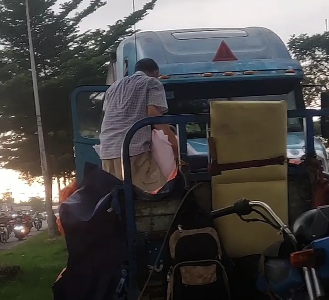 Mai Trâm xin gửi thêm hình ảnh anh em cùng cha con Hoàng Linh Bê gạo lên xe.