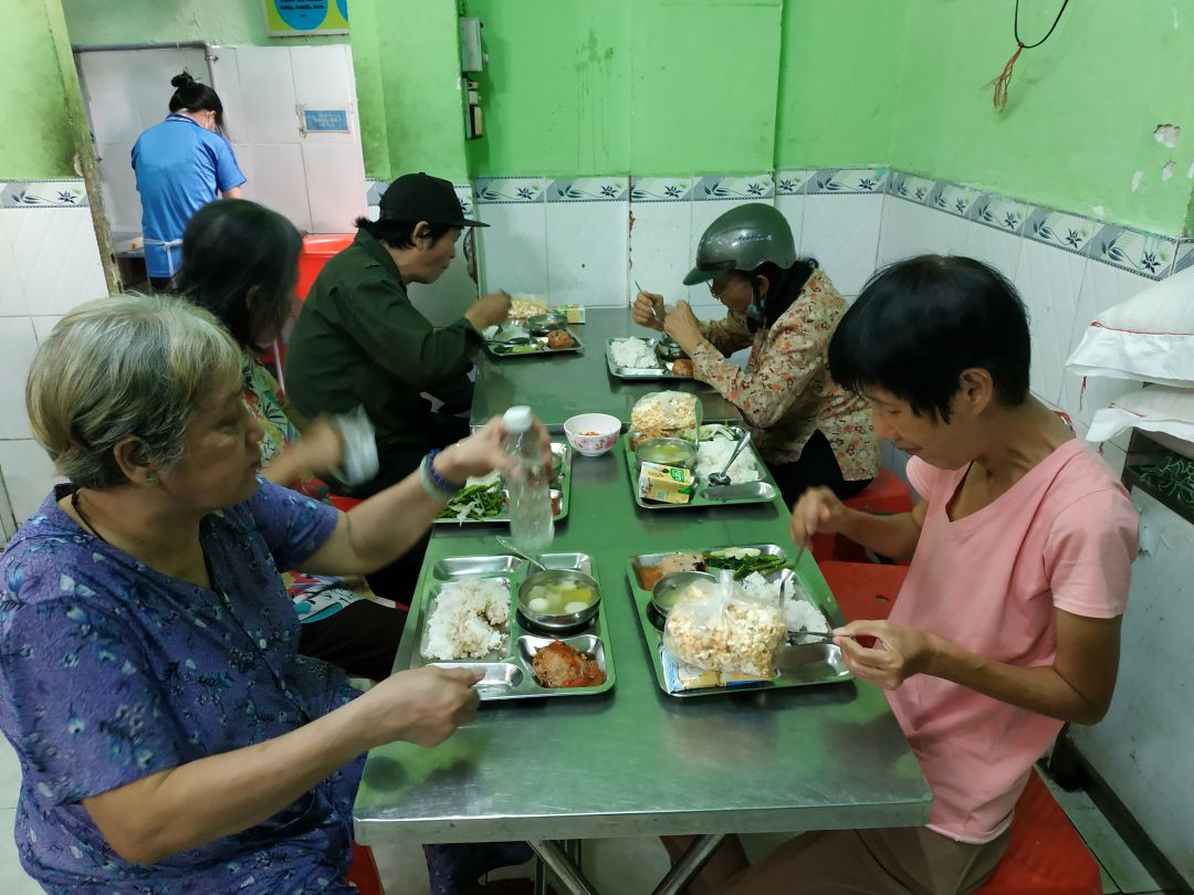 Hiện tại, quán chỉ phục vụ cho bà con mang về chứ không ngồi ăn tại chỗ, tránh tụ tập đông người, luôn nhắc nhở bà con đeo khẩu trang, đứng cách xa nhau và xịt rửa tay trước khi nhận cơm.