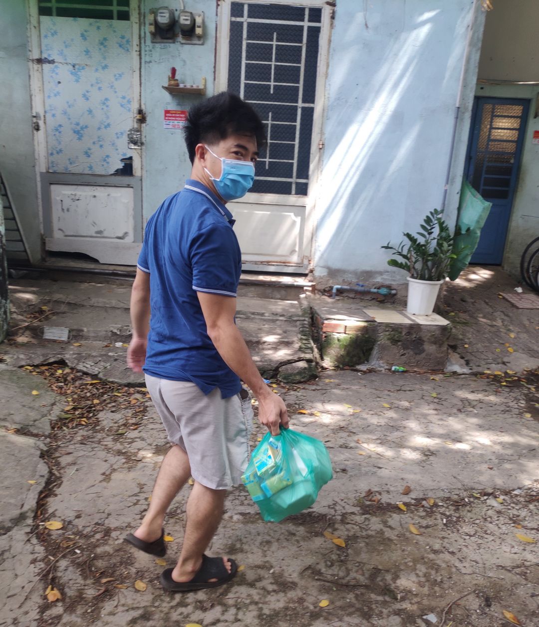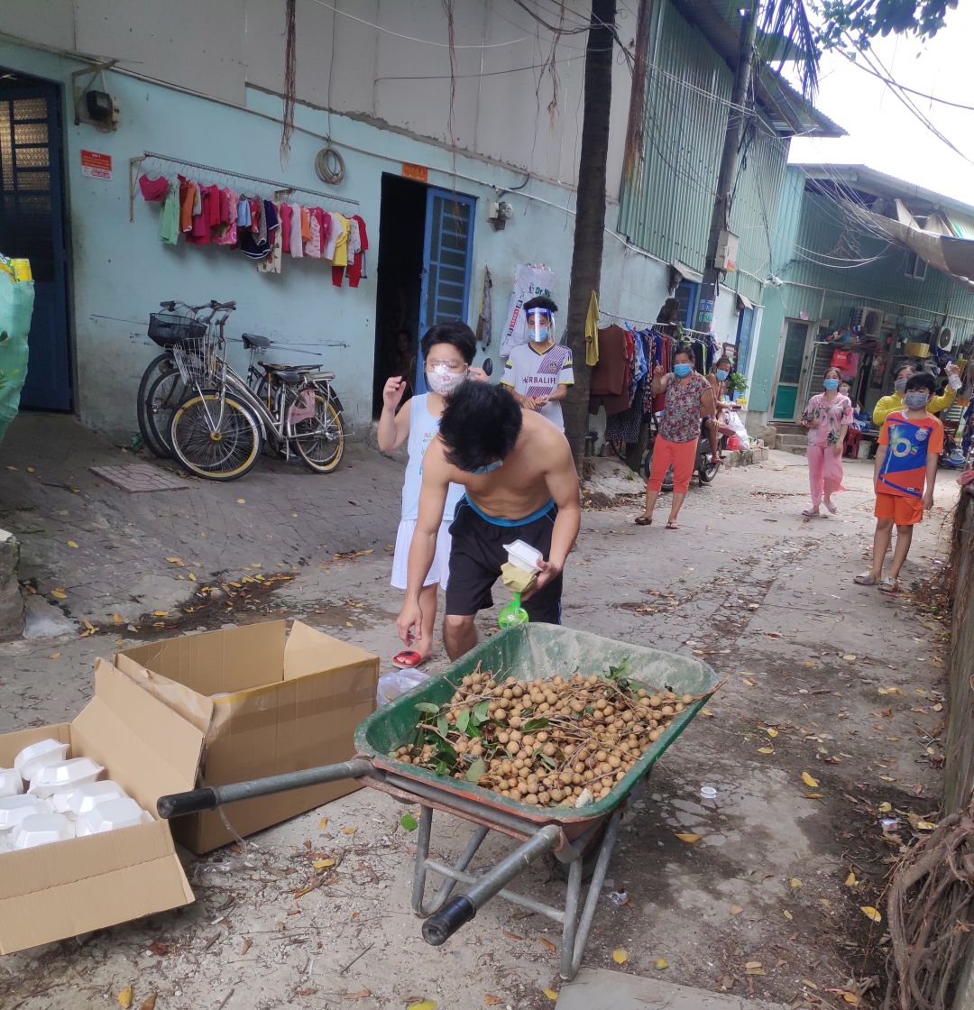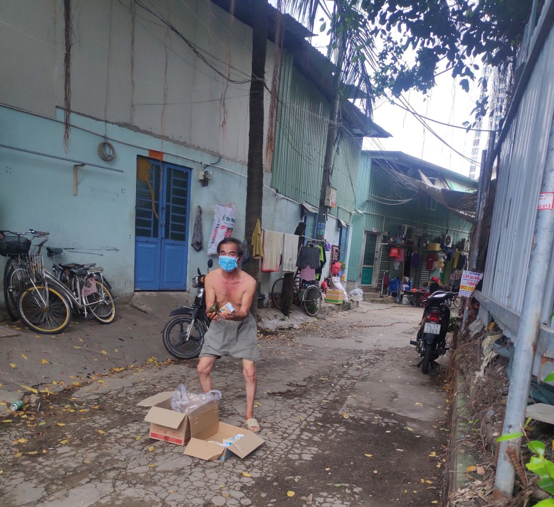 Hôm qua ngày 14/8/2021.Xóm trọ khu cách ly chỗ Mai Trâm có nhận từ quán cơm SG 74 hộp bún xào và 74 hộp sữa đậu nành. Bạn Trần Hùng chở đến khu cách ly để hỗ trợ bà con.