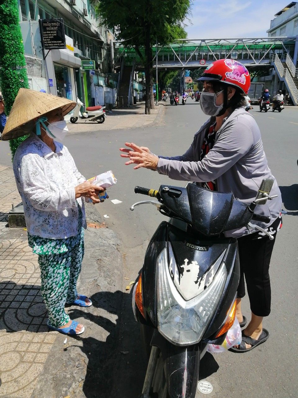 hôm nay Thứ 3 ngày 2/11/2021. buổi hoạt động của quán cơm.gửi cả nhà một số hình ảnh chị Nghĩa đi Phát bánh mì Sữa đậu nành cho bà con khó khăn ở khu vực SG.