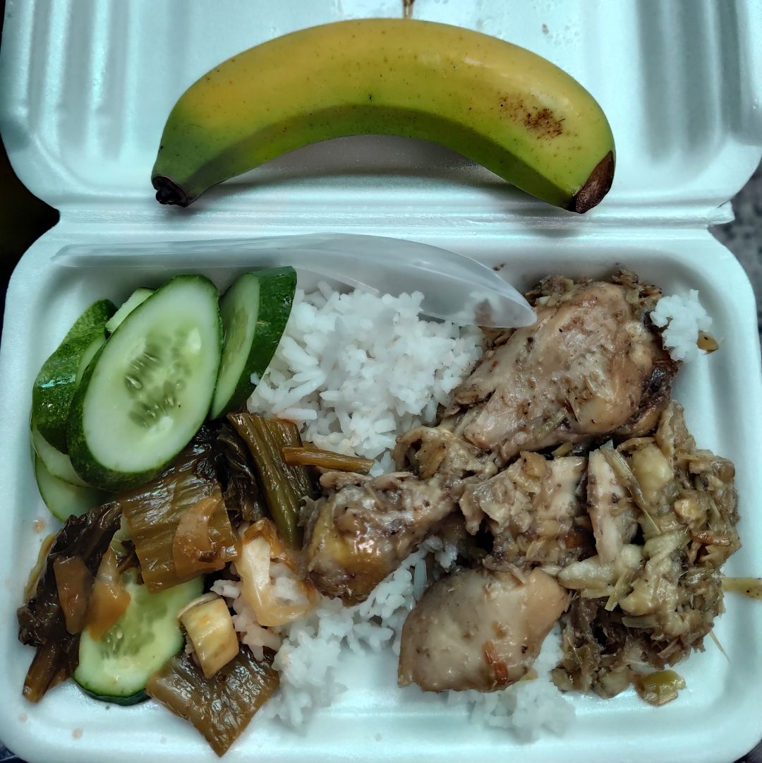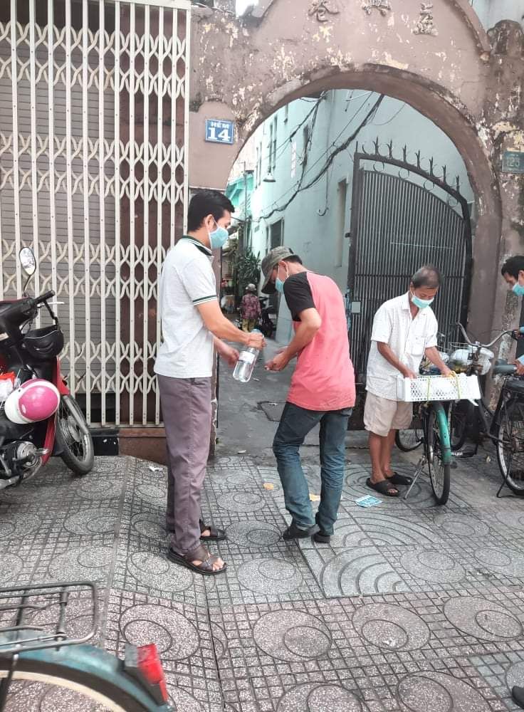 Hôm nay phát Cơm cho bà con có tặng thêm bà con nước sát khuẩn rửa tay và chuối