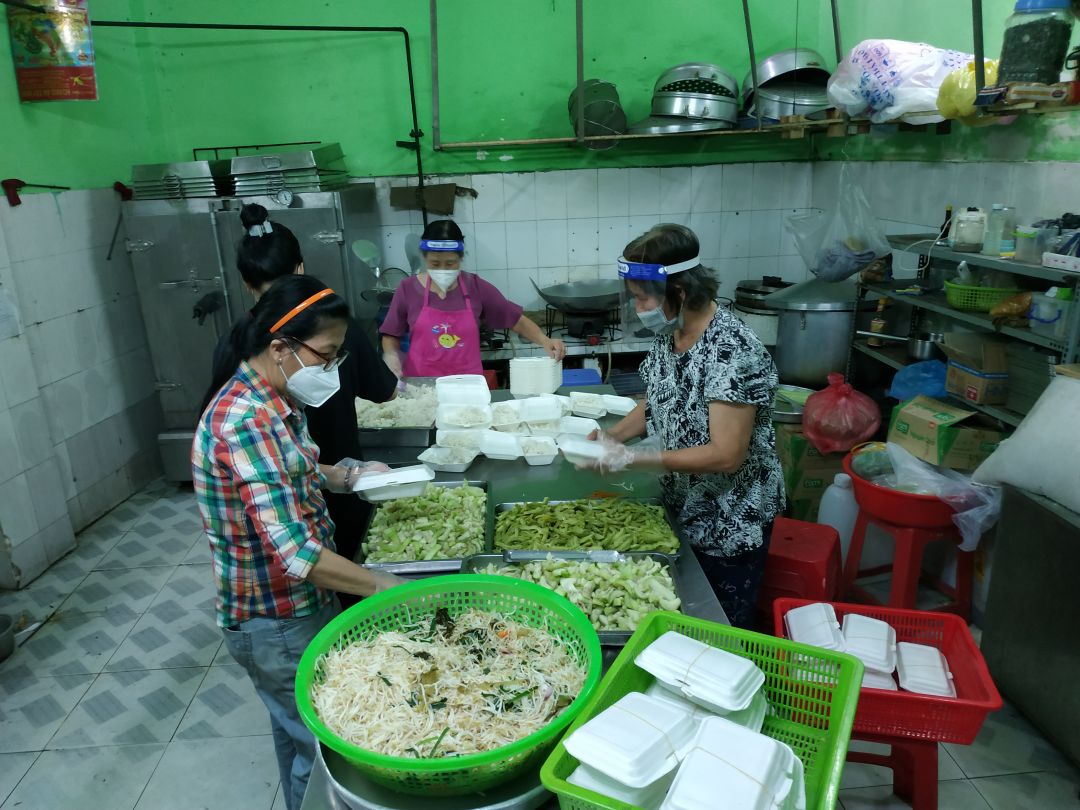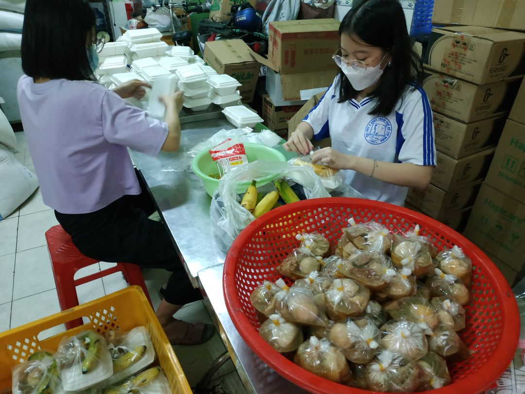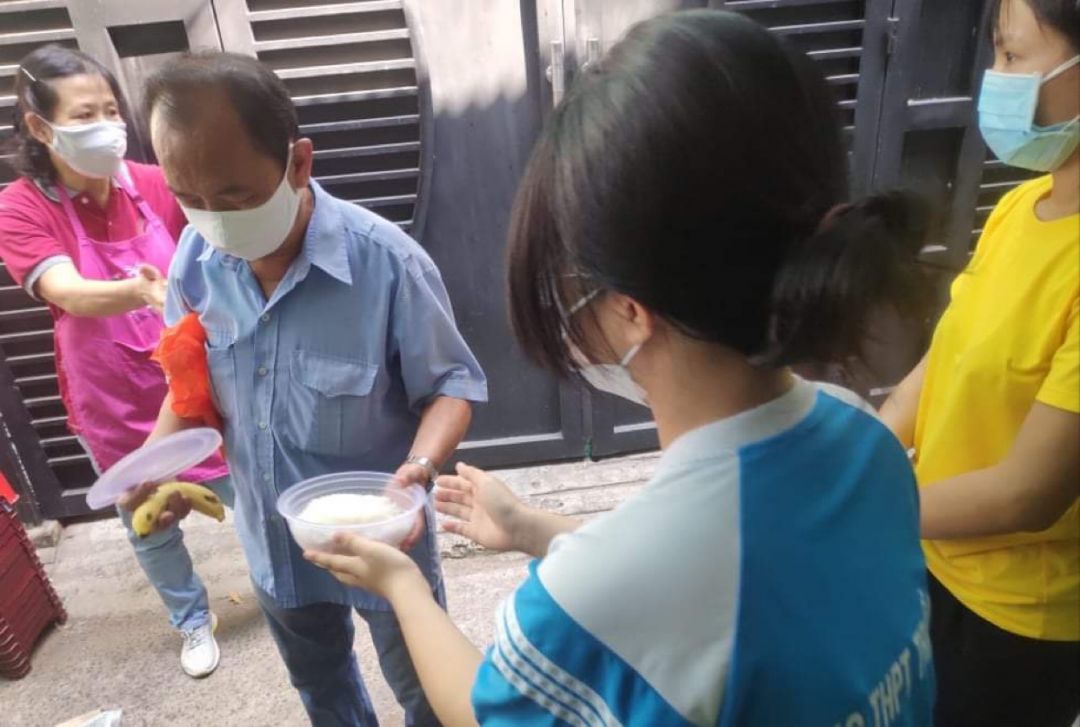 Khá đông các bạn tình nguyện viên trẻ đã đến phụ quán cơm nhiệt tình và vui vẻ.