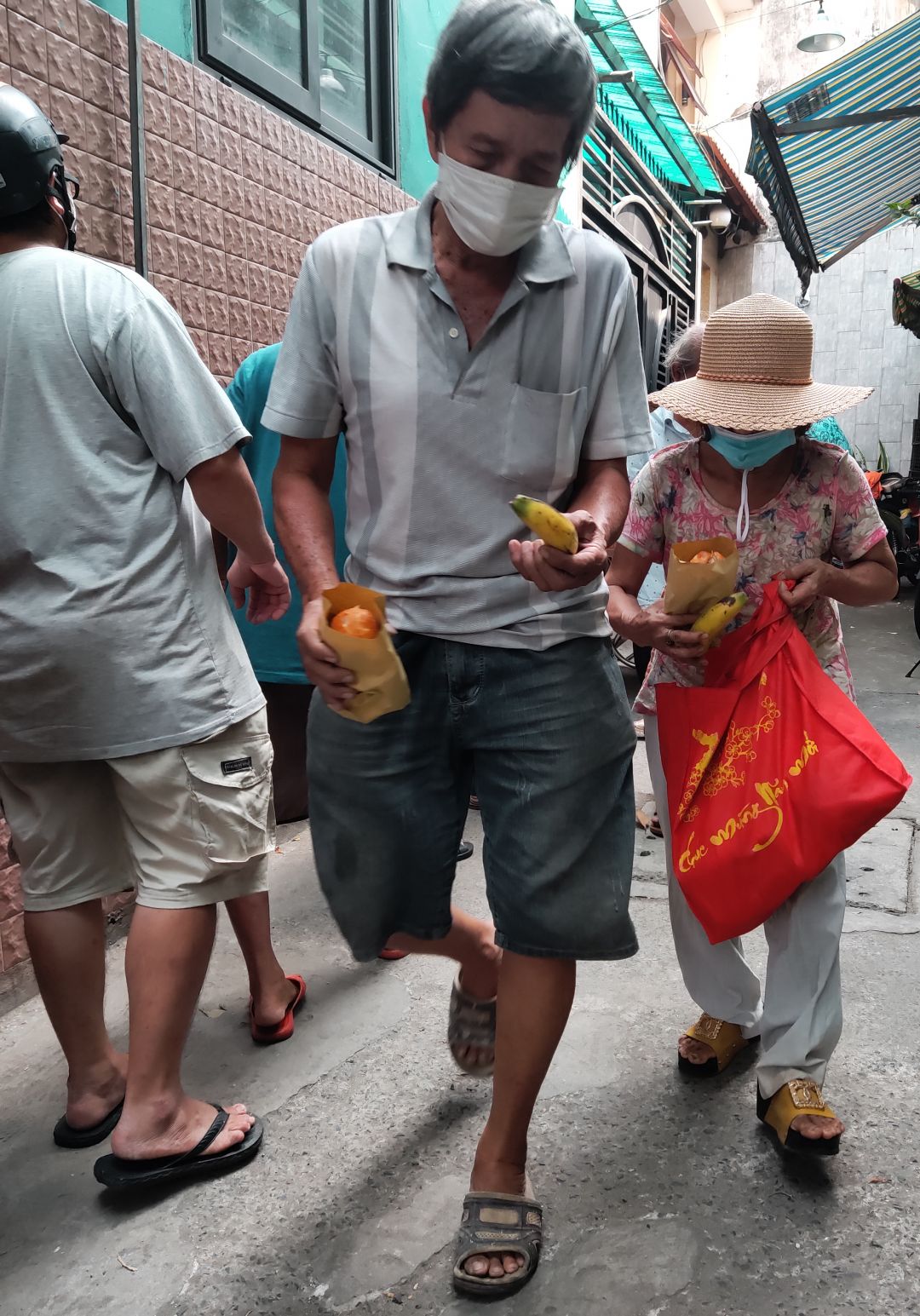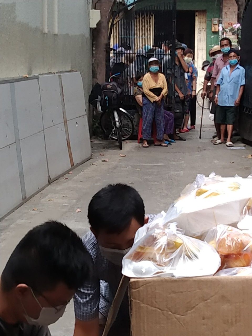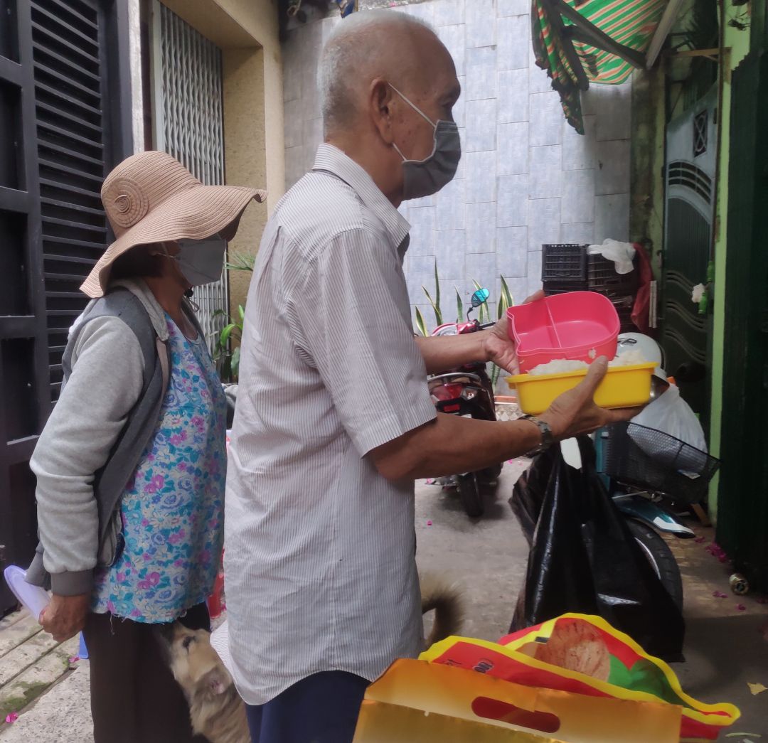 Gửi đến cả nhà một số hình ảnh buổi phát Cơm xíu mại đồ xào và chuối đến tay bà con khó khăn ở khu vực SG ngày 1/1 năm 2022.
