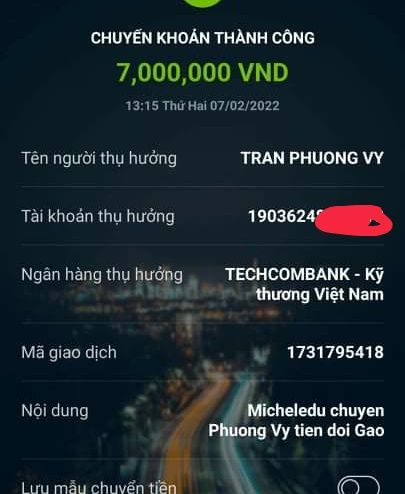 Số tiền Muchele_du và Gia đình bù cho việc đổi Gạo này là 7,000,000₫ các bạn nhé.