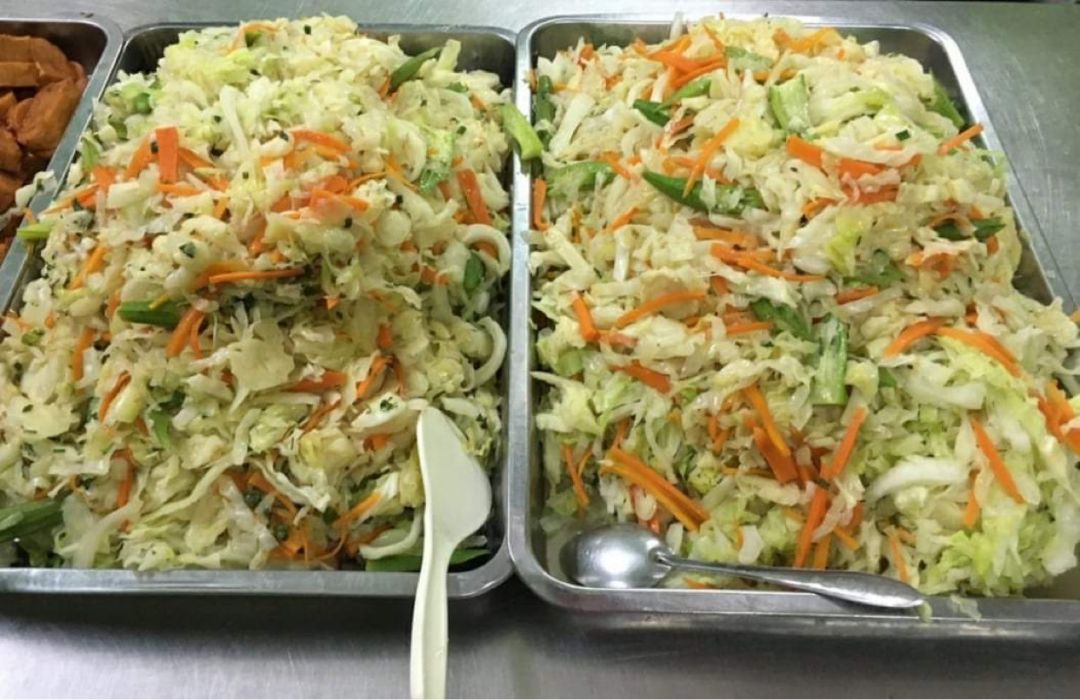 Quán Cơm nấu món mặn xíu mại.đồ xào củ cải đỏ.với mướp và phục vụ thêm cho bà con sữa đậu nành Fiam,