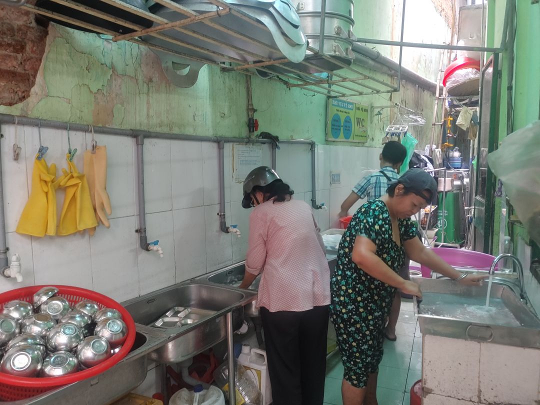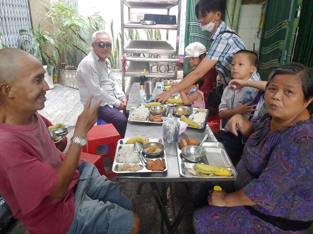 Cũng may đến trưa lúc phục vụ cơm thì các cô thực khách cũng vào hỗ trợ dọn rửa nên mọi thứ vẫn hoàn tất.