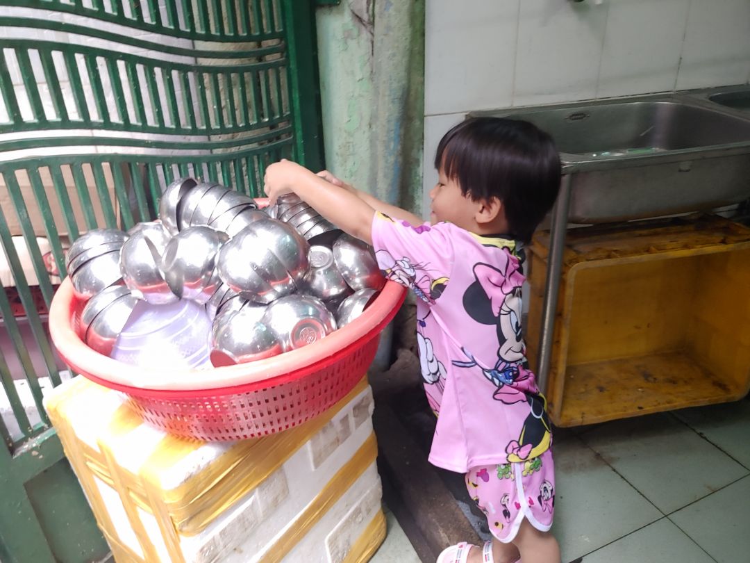 Cũng may đến trưa lúc phục vụ cơm thì các cô thực khách cũng vào hỗ trợ dọn rửa nên mọi thứ vẫn hoàn tất.