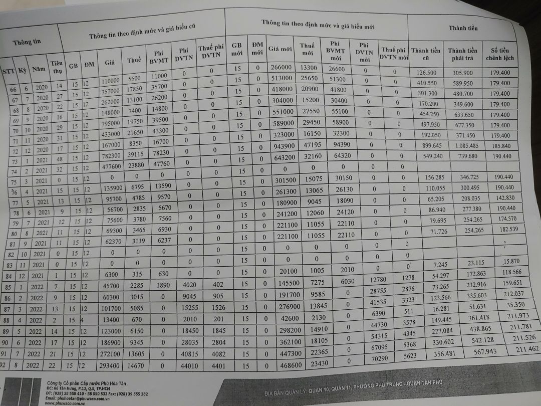 Cụ thể là từ trước năm 2012, định mức sử dụng nước của chủ nhà cũ là 12 khối nước ( cho 3 nhân khẩu), sau đó quán hoạt động, chúng ta không đăng ký lại định mức mới để sử dụng mà dùng theo định mức cũ. Vì vậy, từ năm 2012 đến tháng 9/2022, định mức bên công ty cấp nước tính lại cho quán là 0 ( tức là dùng bao nhiêu tính bấy nhiêu, chi phí cao hơn có định mức).