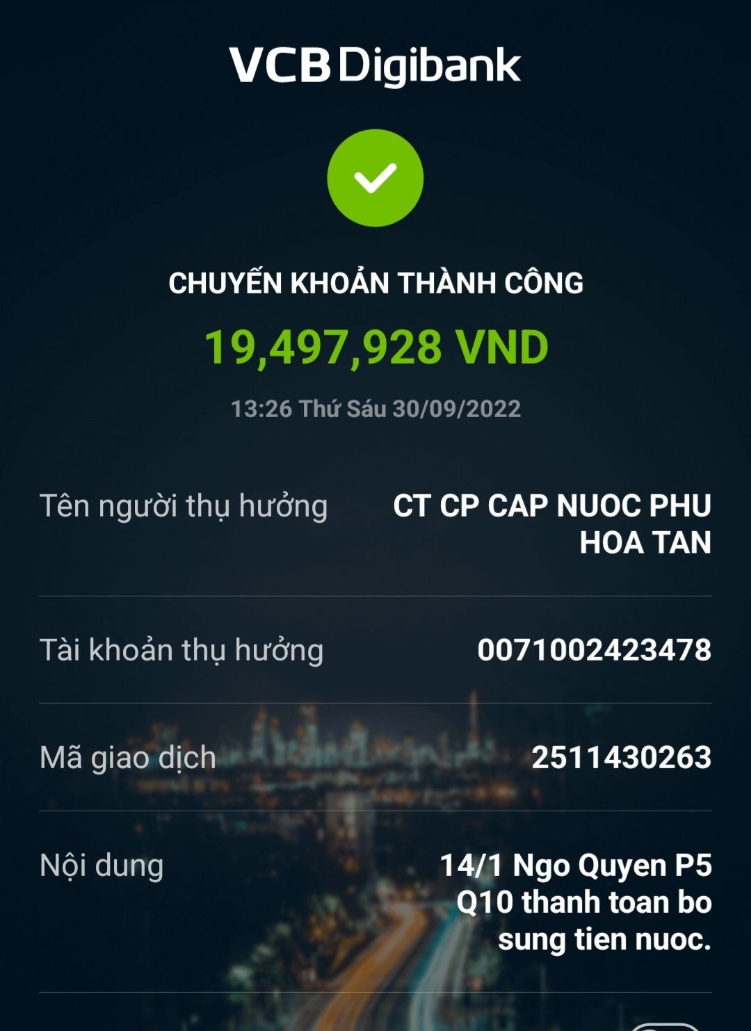 Lathuvang đã chi khoản truy thu tiền nước chênh lệch từ năm 2012 đến tháng9/2022 từ quỹ cơm 2000đ Saigon.