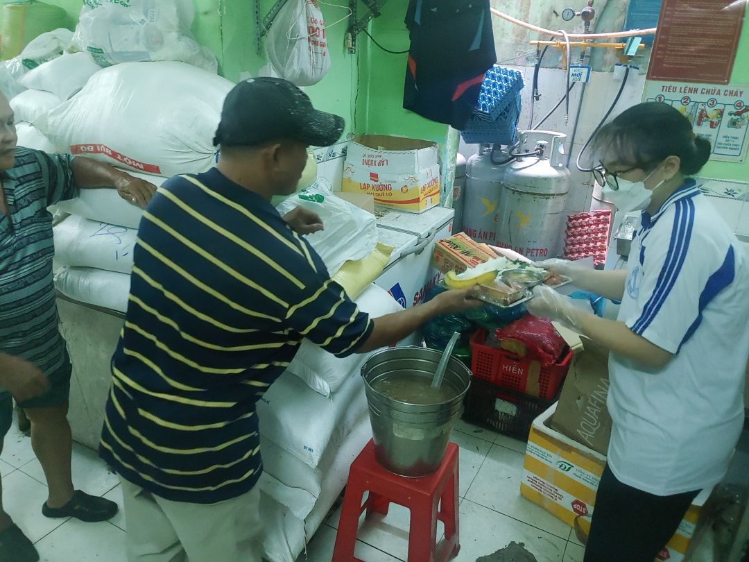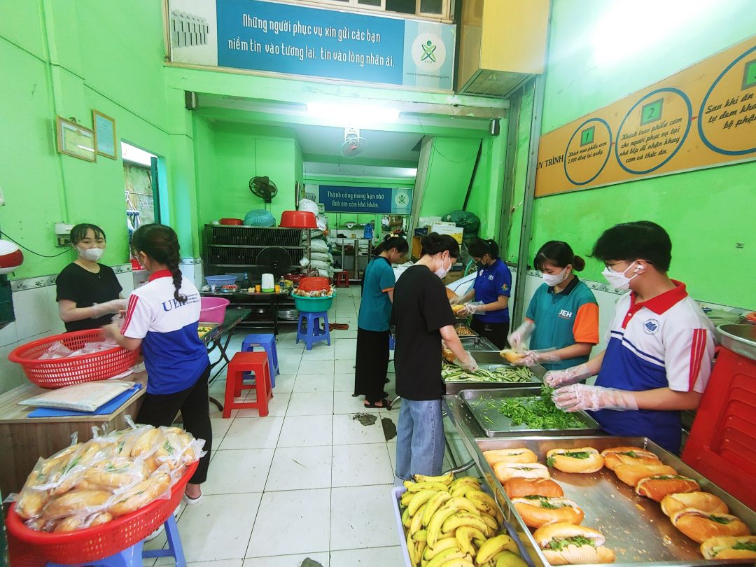 Từ tuần rồi là đã kết thúc đợt hỗ trợ của các bạn SV đội CTXH trường ĐH Kinh Tế nên quán khá vắng TNV, chỉ có các cô đến hỗ trợ là chính.