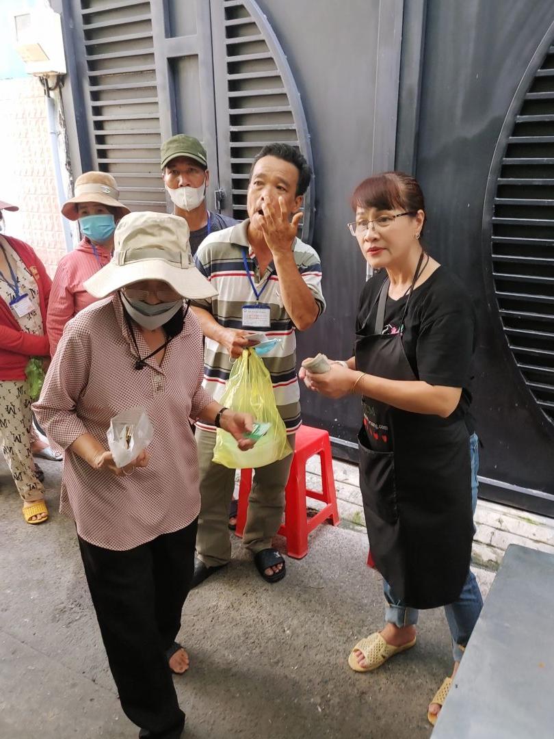 Riêng tại quán cơm 2000đ SG, chị Mai Trâm tuy không nhận lương nhưng trong năm vừa rồi lại hỗ trợ trong việc đi mua - xin rau củ và chở về cho quán. Qua trao đổi với 2 anh, phần tiền thưởng riêng này được chia như sau: