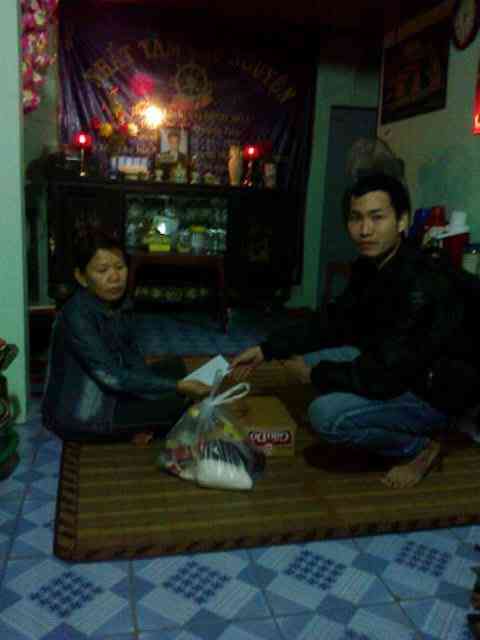 Trưa nay Lệ Tear và 2 người bạn nữa đã đến thăm và trao tiền cho cho gia đình, sức khoẻ của mệ có khá hơn, buổi chiều mệ vẫn gánh bánh canh ra chợ bán.