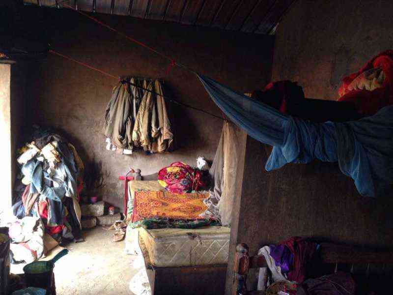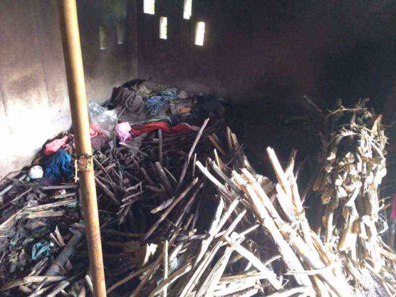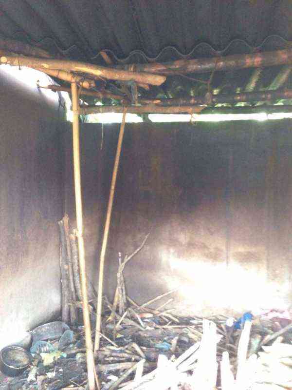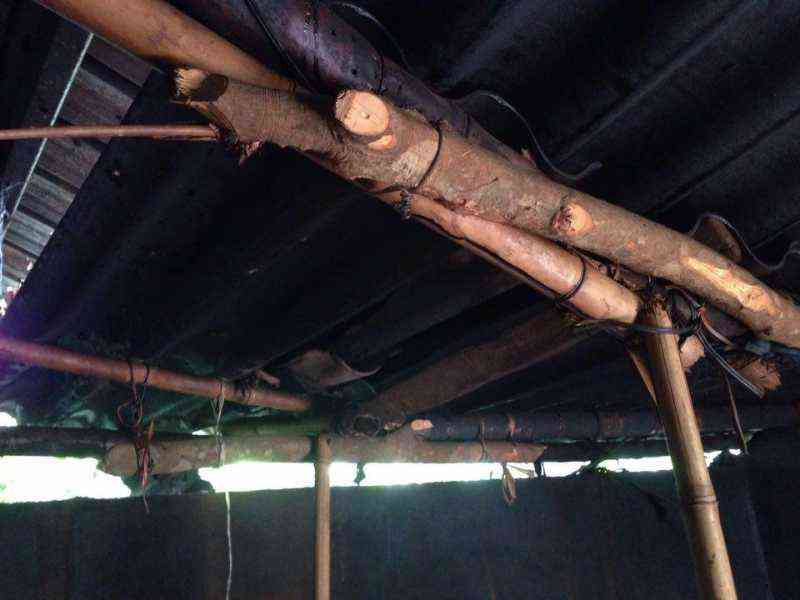 Đợt này cái bếp nhà cụ mấy cái đòn tay đã bị mục gãy, đang dùng cây tràm chống đỡ tạm thời, và có mấy tấm brô đã nứt bể.