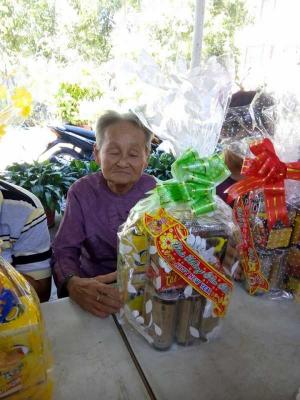 Cụ khoe tết năm nay cụ nhận được nhiều quà, bánh ăn tết. Cụ vui lắm  :)