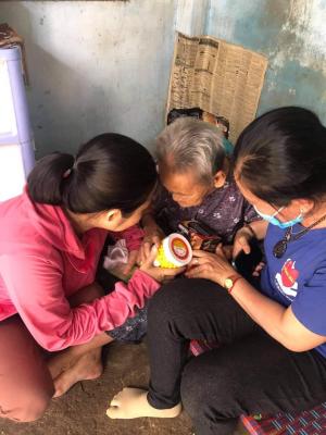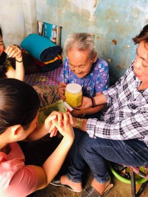 _ Ngày 11/3/21, Phụng và nhóm ĐG trung chuyển 500k tháng 3 của chị Viethuong + nghệ viên mật ong + tuýp thuốc xoa bóp giảm đau gửi từ Mỹ về tặng cụ.