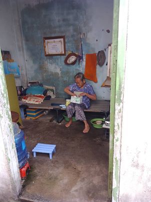 Chiếc giường bố cũ kỹ, hư hỏng của cụ đã được các bạn của LP ở Bà Rịa mang bỏ - thay thế giường mới cho cụ sử dụng.