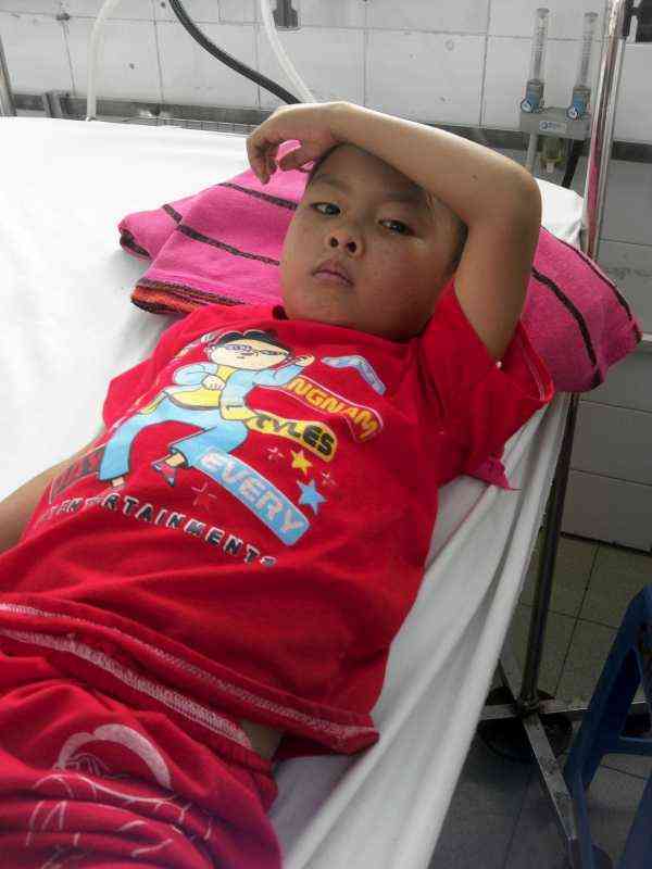 Đợt điều trị này Quyến đã phải truyền 5 bịch máu ( lượng máu phải truyền mọi lần chỉ là 2 bịch ) , hiện nay cháu đau nhiều và không thể tự ngồi dậy được .
